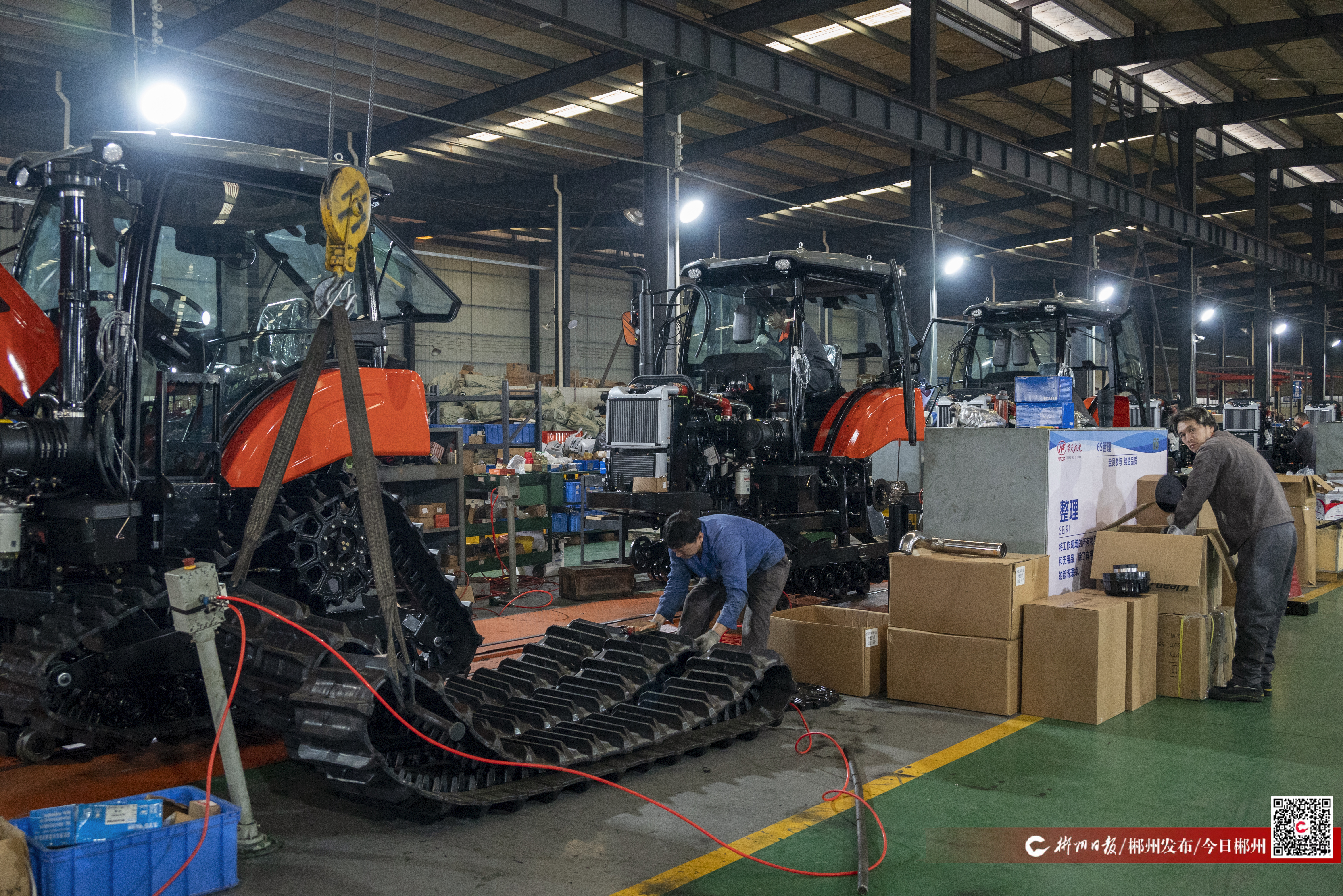 春节假期后首个工作日,农夫机电的生产车间内已是一派繁忙的景象。工人们熟练地进行零部件组装、调试和检测,一台台崭新的履带拖拉机在流水线上精准装配,蓄势待发。
