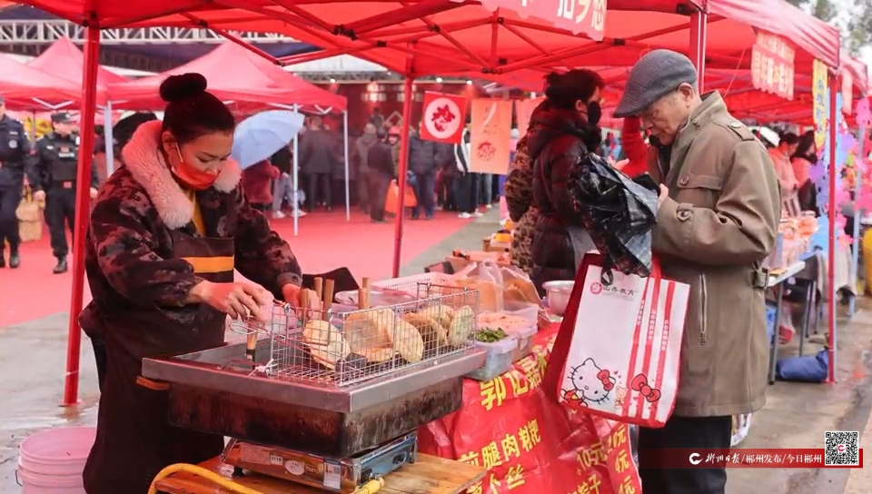 当天上午9时,古村巷道已是人头攒动,空气中飘散着套花、米花的甜香以及新鲜糍粑的温热气息。从村头至村尾,近百个展位依次排开,本地黄牛肉、生态土鸡、时令蔬菜、手工套花、特色糍粑等三百余种农副产品琳琅满目,令人应接不暇。